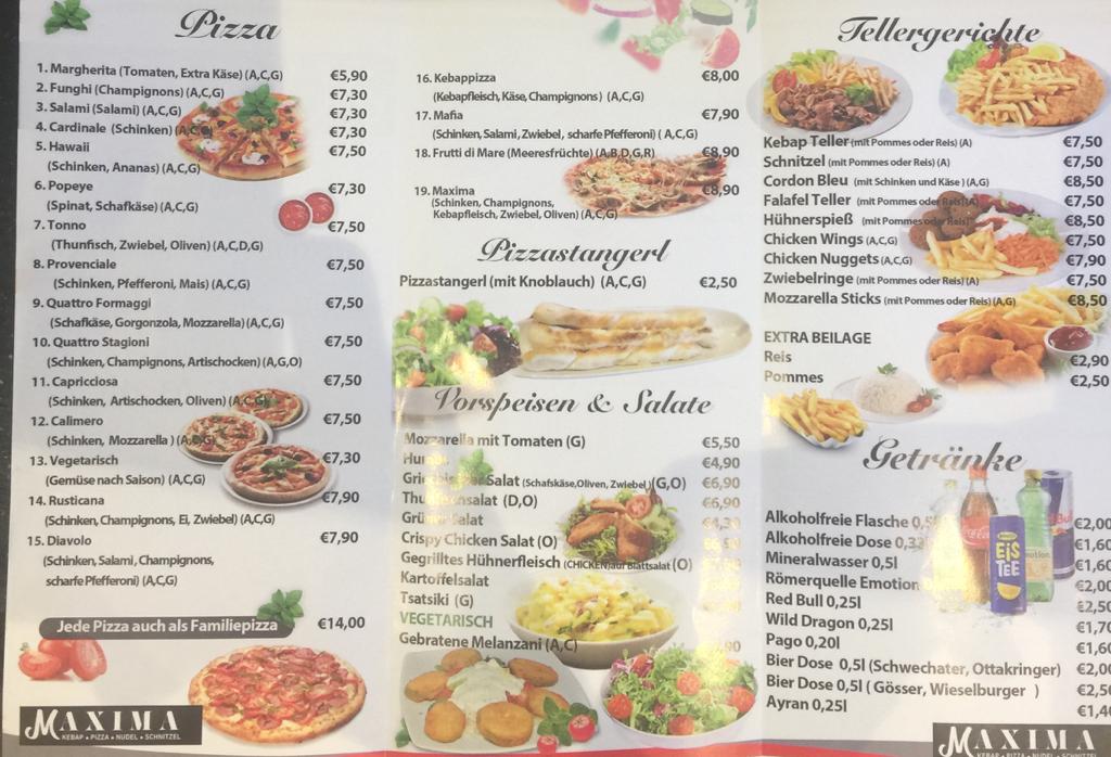 MAXIMA Restaurant Menu